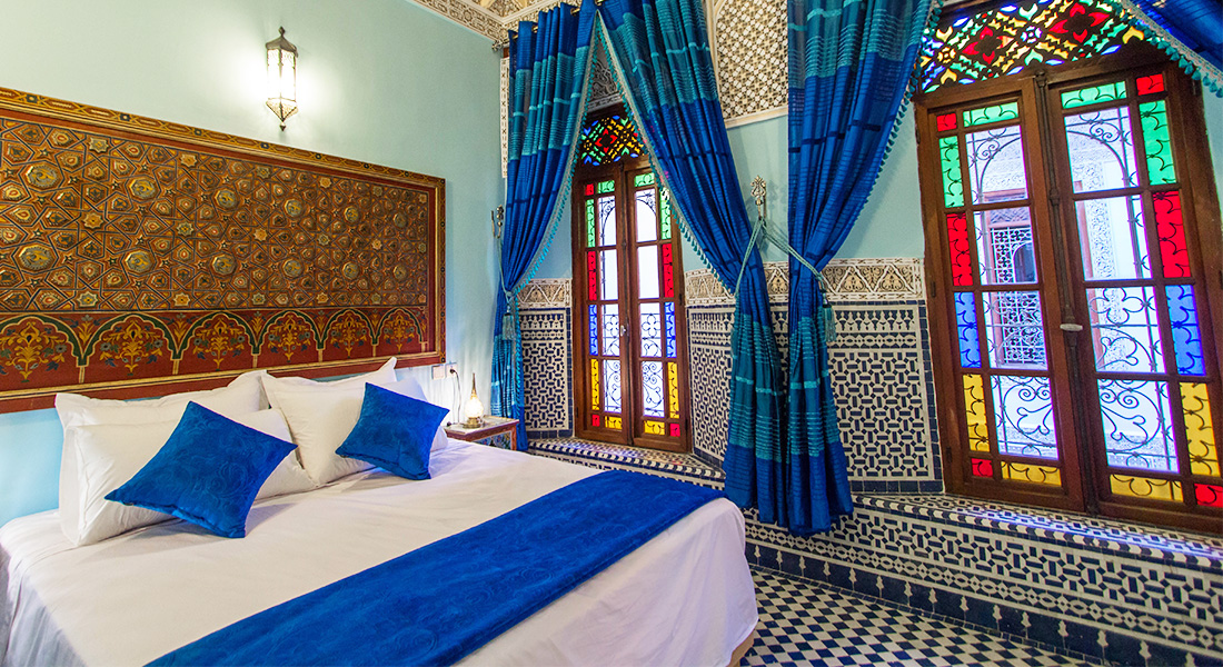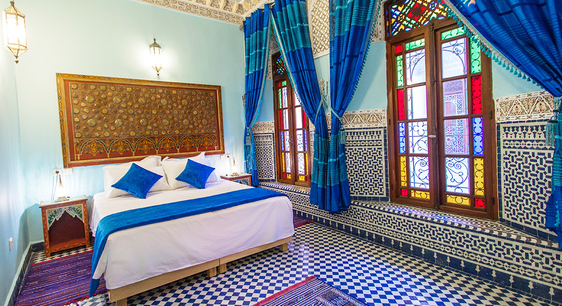 Superior room Chefchaouen is located on the first floor and look onto the patio. This room is equipped with double bed (160x200) and privative bathroom with bath and toilet. Superior room can accommodate maximum 4 adults. The Moroccan breakfast is included.