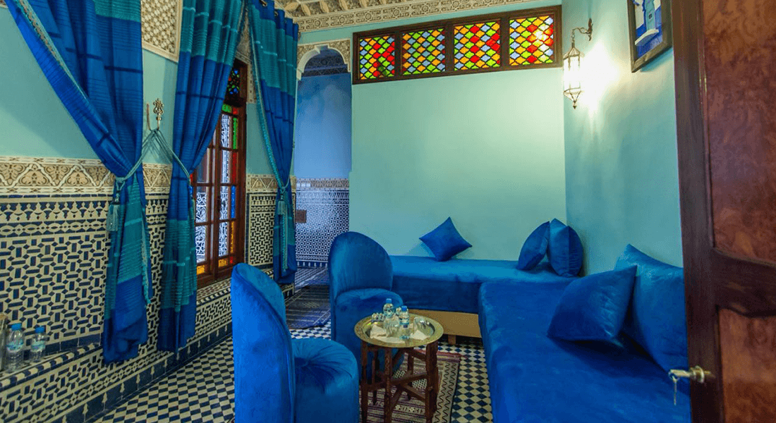 Superior room Chefchaouen is located on the first floor and look onto the patio. This room is equipped with double bed (160x200) and privative bathroom with bath and toilet. Superior room can accommodate maximum 4 adults. The Moroccan breakfast is included.
